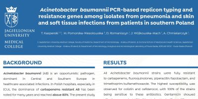 Background : Acinetobacter baumannii (AB) is an opportunistic pathogen, dominant in Central/Southern Europe in healthcare-associated infections. In Polish hospitals, especially in intensive care units, there is a predominance of carbapenem-resistant AB, which in 2021 reached over 80% according to ECDC. The present study investigated AB resistance genes and the type of plasmids on which they are carried.